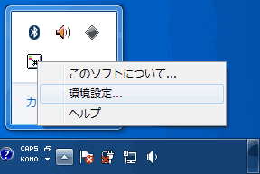 ドライバが読み込まれると、タスクバーにアイコンが表示されます。Windows7では右図のように[▲]内にアイコンが隠れることがあります。